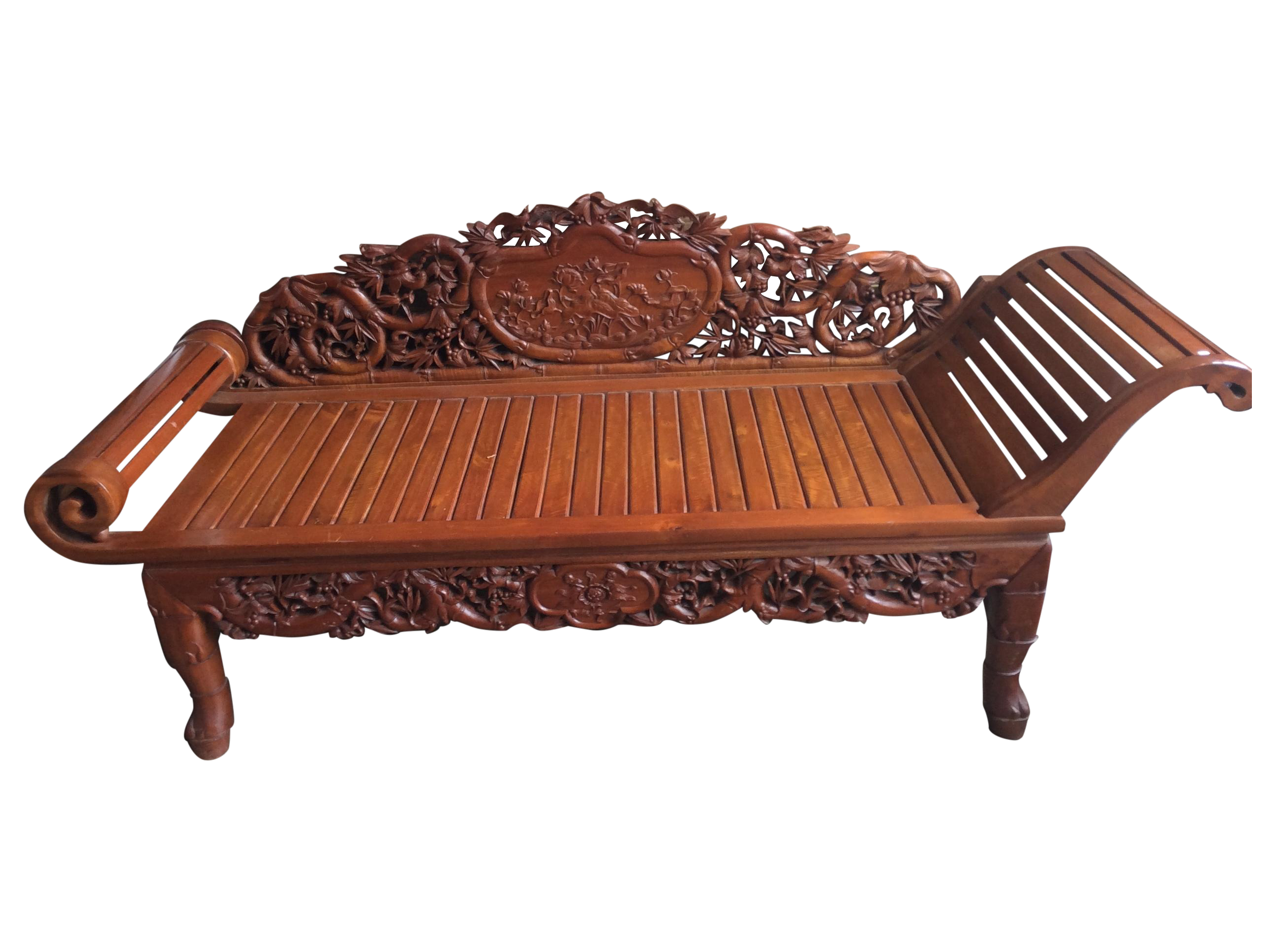 Vietnamese Hand Carved Wood Chaise Lounge | Chairish